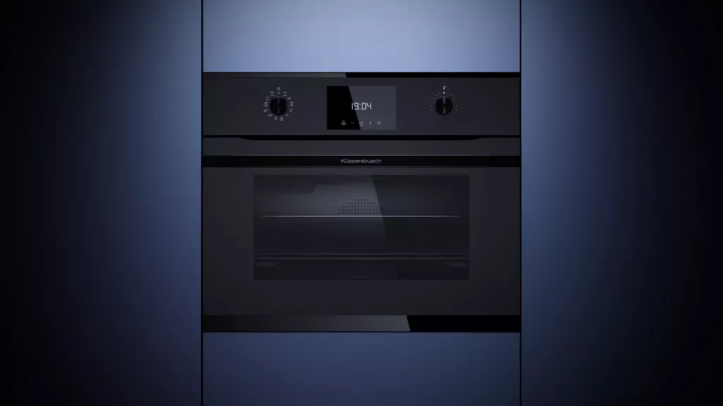 Управление. Электронная система с поворотными алюминиевыми переключателями и TFT-дисплеем с графическими полями. На дисплее отображается фактическая и рекомендуемая температура, а также время до окончания приготовления.