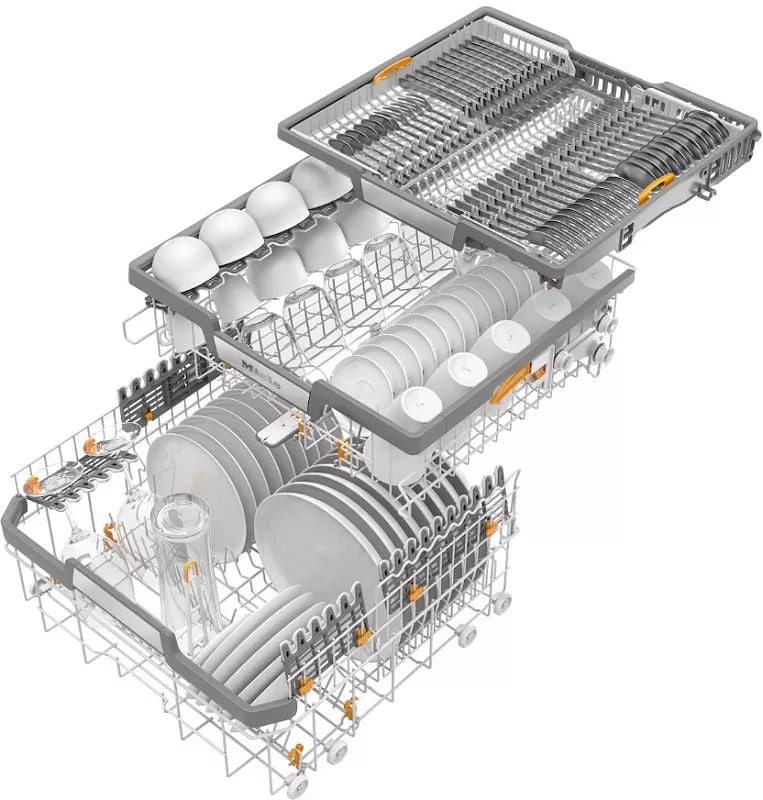 Внутреннее освещение BrilliantLight облегчает удобство загрузки и выгрузки посуды. Запатентованная конструкция поддона 3D MultiFlex поможет разместить столовые приборы для наилучшего промывания. Нижняя и верхняя корзины ExtraComfort легко трансформируются для удобства пользователей.