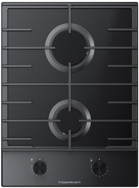 Газовая варочная панель Kuppersbusch VKG 3850-0 SE E5 из дизайн-линии K-series.8 — это элегантное и компактное решение для современных кухонь, сочетающее премиальный дизайн, продуманную эргономику и повышенную безопасность. Модель выполнена в строгом черном цвете с поверхностью из стеклокерамики и обработкой края без рамки, что создает эффект полной интеграции в столешницу даже при накладной установке. Панель оснащена двумя газовыми конфорками разной мощности: задняя мощная конфорка 2.8 кВт для быстрого кипячения и приготовления в большой посуде, передняя 1.75 кВт для тушения и томления. Медные горелки обеспечивают стабильное и равномерное распределение тепла, а чугунные решетки надежно фиксируют посуду и выдерживают значительные нагрузки. Эмалированные крышки защищают горелки и служат эстетичной декоративной деталью. Механическое управление с поворотными переключателями и фронтальным расположением обеспечивает интуитивную регулировку пламени. Встроенный электроподжиг и система безопасности газ-контроль делают использование максимально комфортным и безопасным.