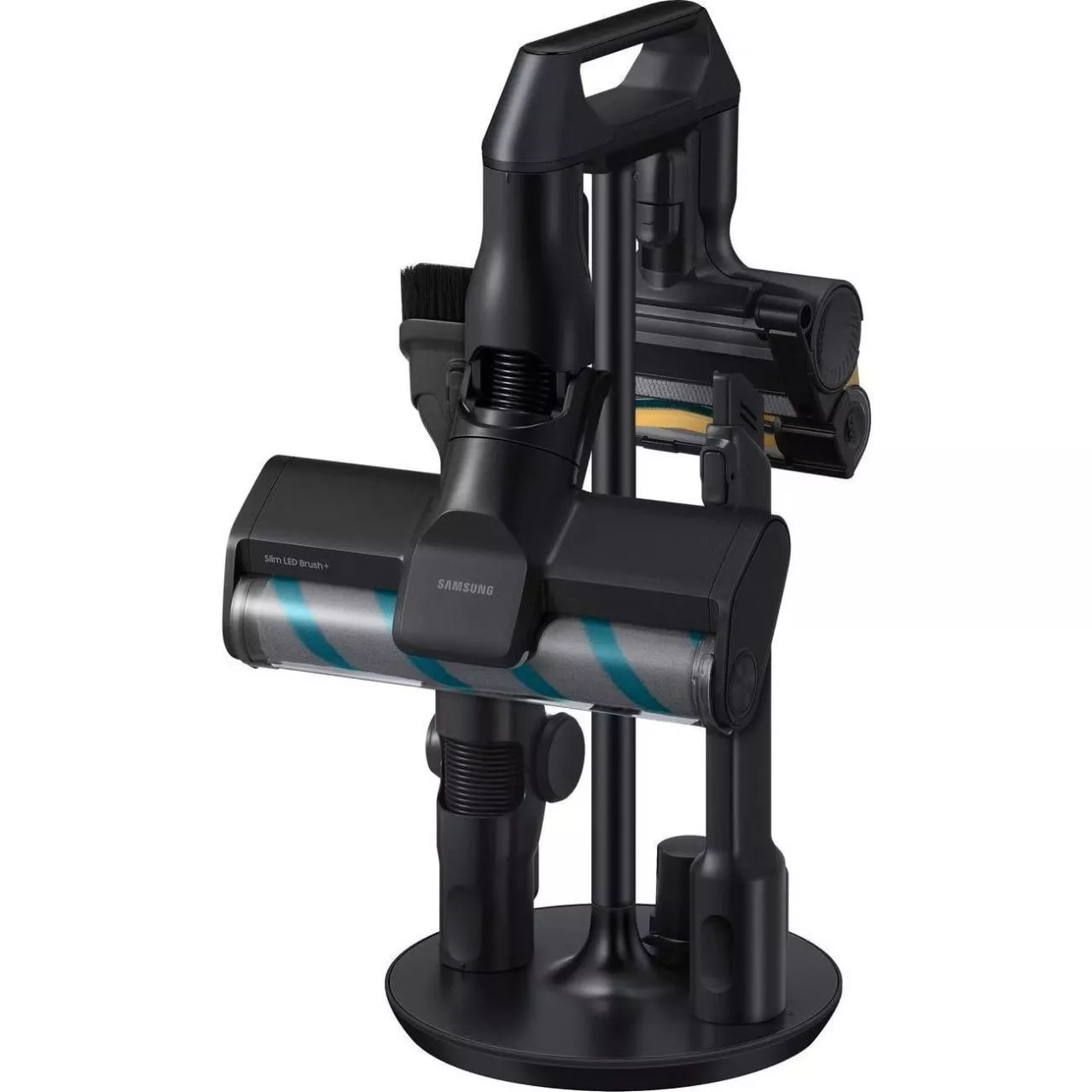 В комплекте 5 насадок, включая турбощетку, мини-электрощетку для мебели, гибкую насадку и выдвижную щелевую, что обеспечивает универсальность при уборке полов, ковров, мягкой мебели и труднодоступных мест. Специальная насадка для сбора шерсти облегчает уход за питомцами. Выходной фильтр HEPA — сменный и моющийся, эффективно задерживает мельчайшие частицы пыли и аллергены. Подсветка зоны уборки помогает не пропустить загрязнения в темных углах. Электронное управление и индикация на корпусе отображают режим работы и уровень заряда. Пылесос поставляется с подставкой для вертикальной установки.